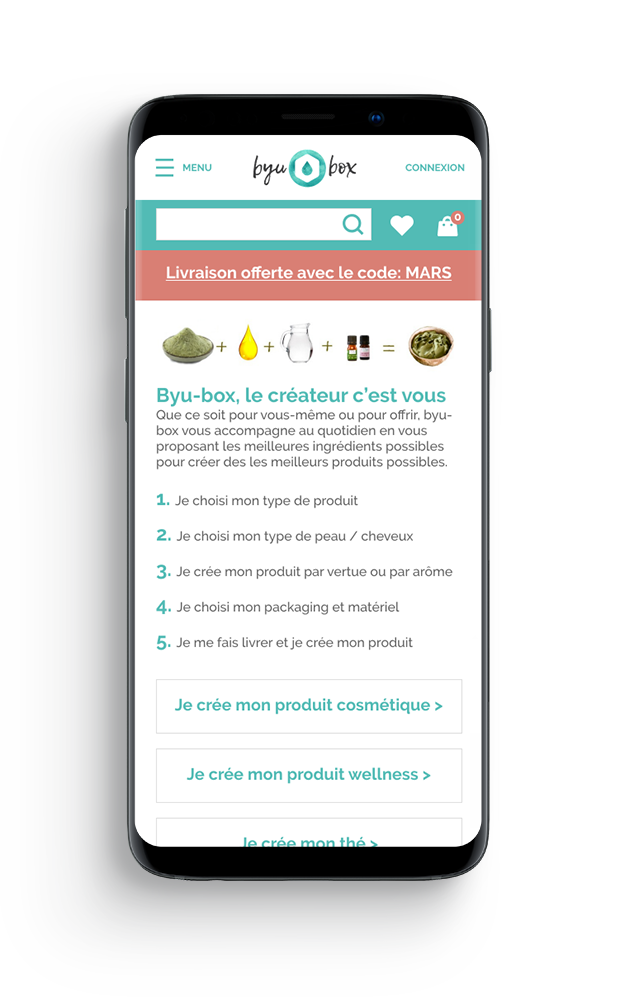 Byu-Box est une marque qui propose l’achat de kits de produits cosmétiques, wellness et thés à fabriquer soi-même (do it yourself).