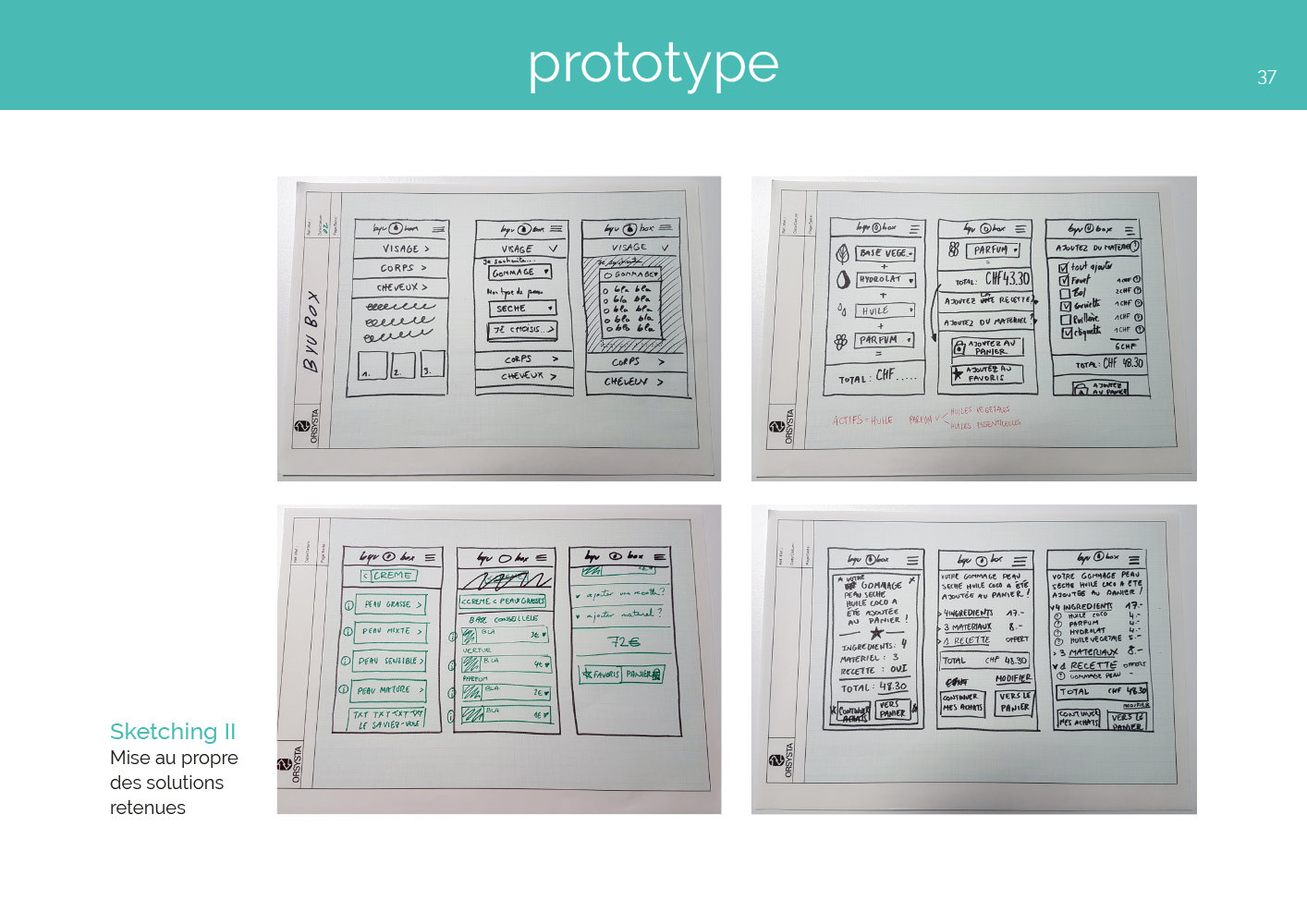 - Prototypage du parcours client (mobile uniquement) selon un scénario prédéfini.