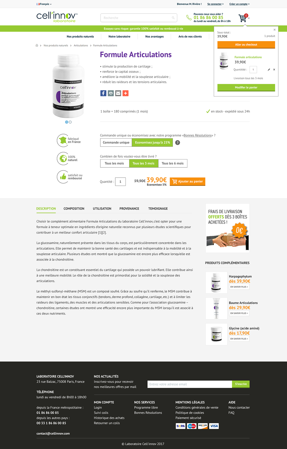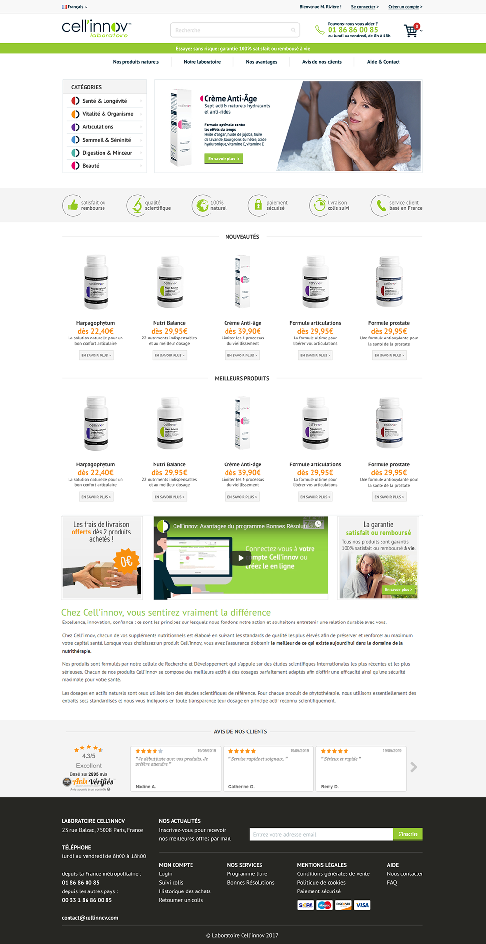 Réalisation de la charte graphique, pictogrammes et maquettes pour le nouveau site ecommerce cellinnov.com.