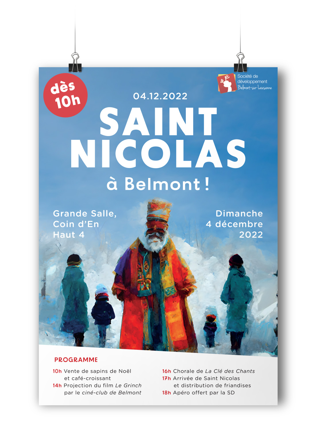 Création de l’affiche de l’événement Saint Nicolas pour les enfants de Belmont-sur-Lausanne. Belmont-sur-Lausanne.