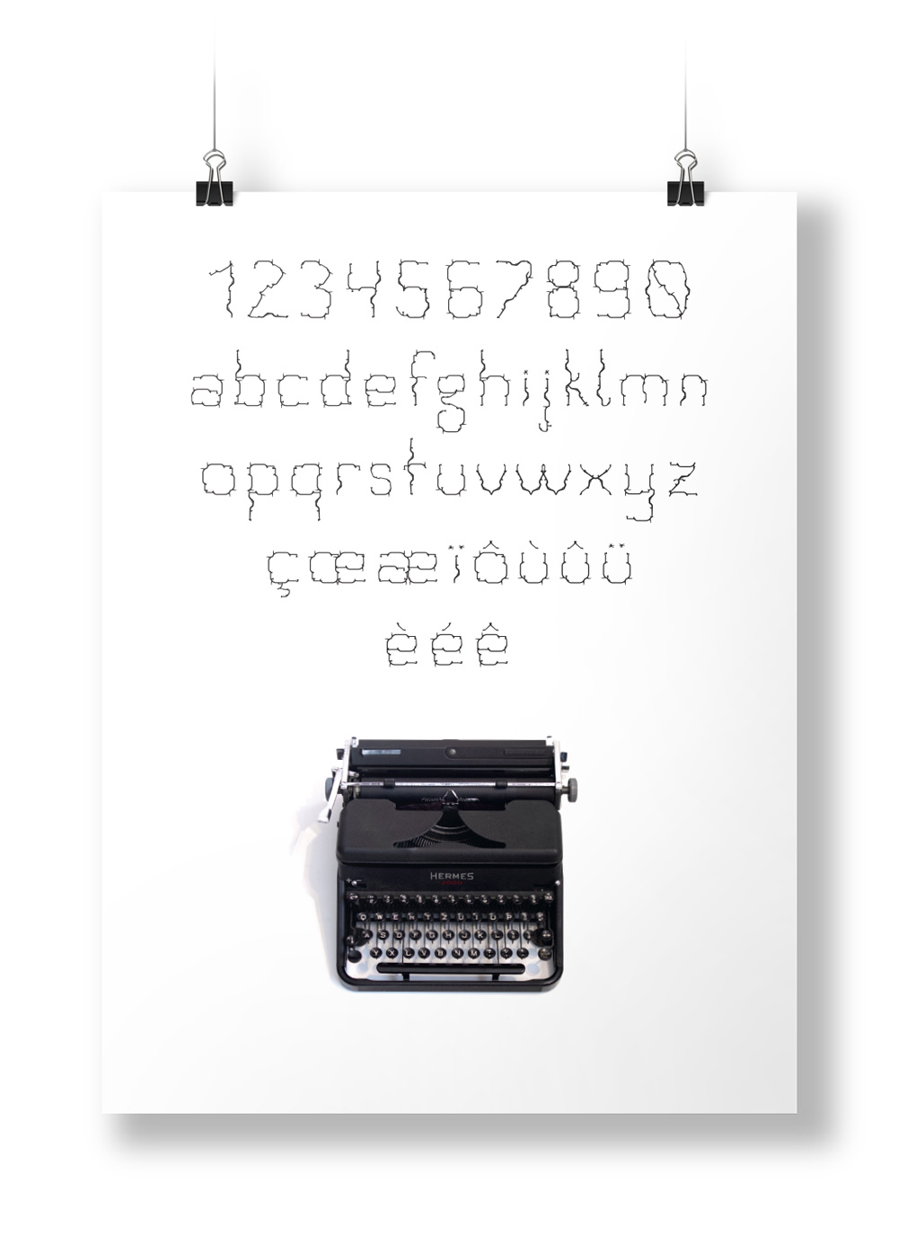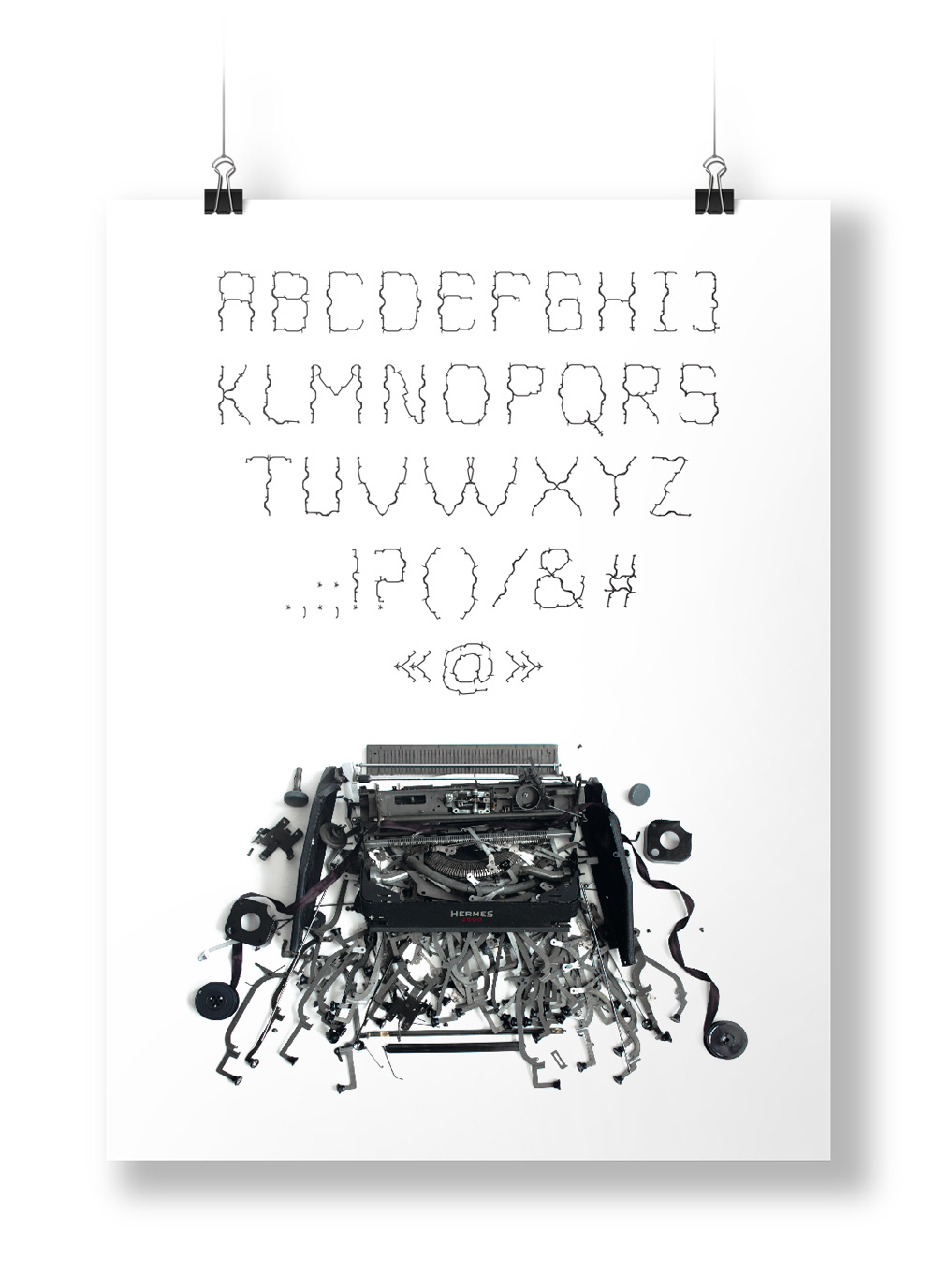 Police créée à l’aide de bras mécaniques d’une ancienne machine à écrire Hermès des années 1940.